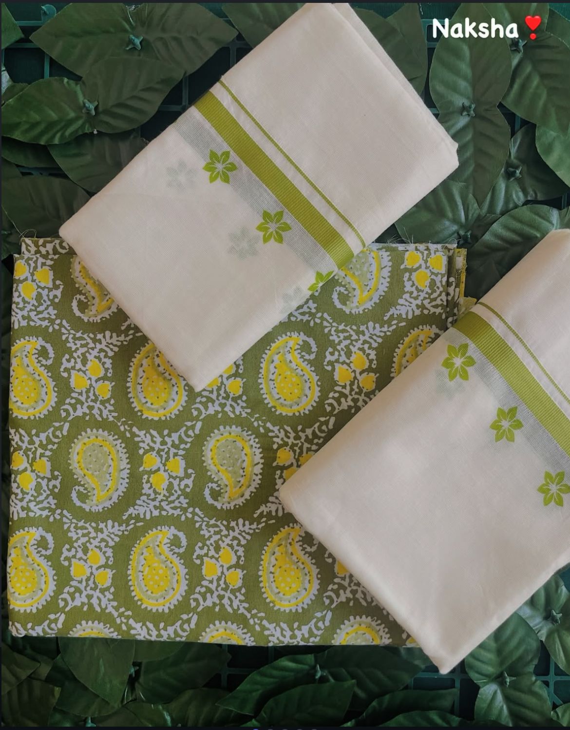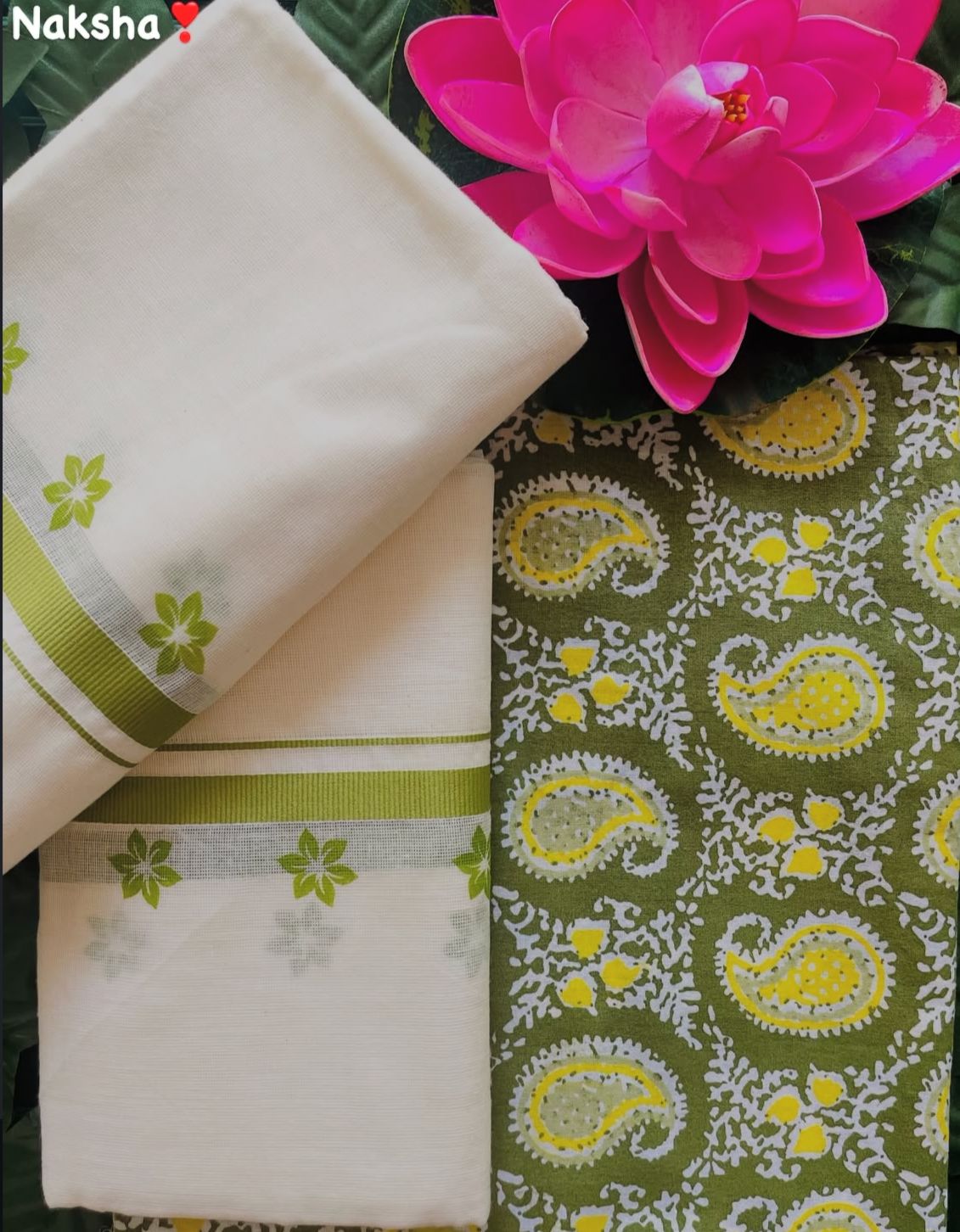 This handwoven setmund, with delicate floral accents and a gorgeous paisley- printed bottom, is a must-have for your wardrobe.
